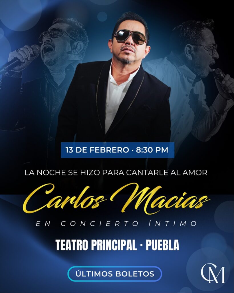 Si traes el corazón sensible o simplemente ganas de sentir bonito, este es el plan. Carlos Macías llega a Puebla y sus canciones hacen justo eso: bajarte la guardia. “Tu olvido”, “Divina tú” y “Mil vidas” no se escuchan, se dicen despacio, como cuando una canción entiende exactamente por lo que estás pasando.